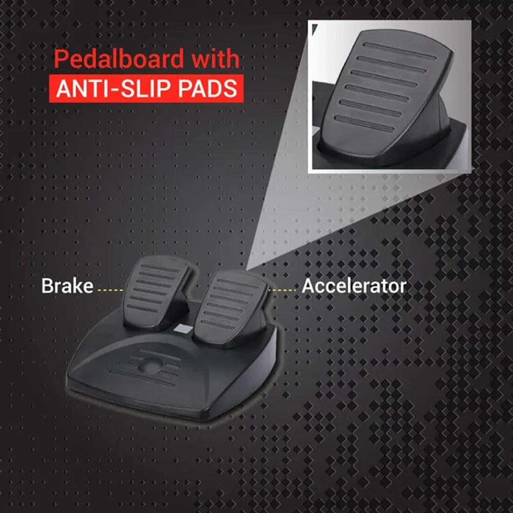 The two ergonomically located pedal shifters add to the realism of your driving experience, providing quick and responsive gear shifts. With a 180-degree lock-to-lock rotation, the steering wheel mimics the range of motion found in real vehicles, ensuring a lifelike feel as you navigate through curves and straights.