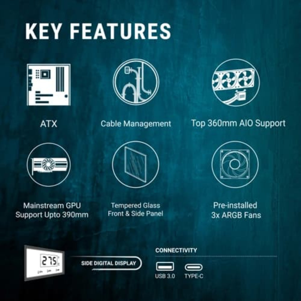 Features of ANT ESPORTS Crystal X3 LCD ARGB ATX Mid Tower Cabinet ( Black )
