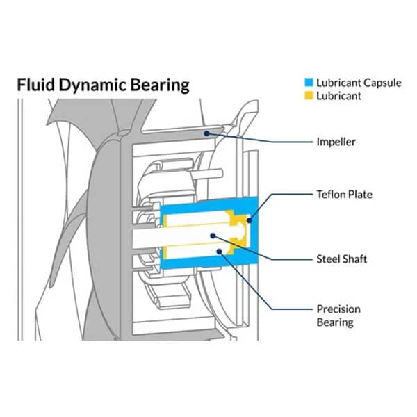 Thanks to an alloy/lubricant combination developed in Germany, friction within the bearing is reduced and greater efficiency is achieved. As a result, there is less heat development as well as less bearing noise, which means you can enjoy a longer service life from your fan.