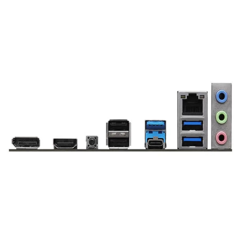| Rear Panel I/O | - 2 x Antenna Mounting Points - 1 x HDMI Port - 1 x DisplayPort 1.4 - 1 x USB 3.2 Gen1 Type-C Port - 3 x USB 3.2 Gen1 Type-A Ports - 2 x USB 2.0 Ports - 1 x RJ-45 LAN Port - 1 x BIOS Flashback Button - HD Audio Jacks: Line in / Front Speaker / Microphone |