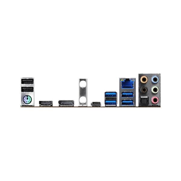 - 1 x Antenna Bracket - 1 x PS/2 Mouse/Keyboard Port - 1 x HDMI Port - 1 x DisplayPort 1.4 - 1 x Optical SPDIF Out Port - 2 x USB 2.0 Ports (Supports ESD Protection) - 4 x USB 3.2 Gen1 Type-A Ports (Supports ESD Protection) - 1 x USB 3.2 Gen1 Type-C Port (Supports ESD Protection) - 1 x RJ-45 LAN Port with LED (ACT/LINK LED and SPEED LED) - HD Audio Jacks: Rear Speaker / Central / Bass / Line in / Front Speaker / Microphone (Gold Audio Jacks) |