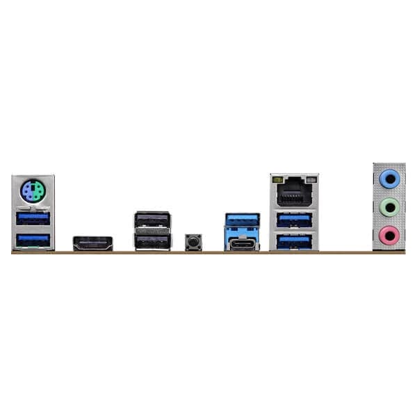 - 3 x Antenna Mounting Points - 1 x PS/2 Mouse/Keyboard Port - 1 x HDMI Port - 1 x USB 3.2 Gen2 Type-A Port (10 Gb/s) (ReDriver) (Supports ESD Protection) - 1 x USB 3.2 Gen2 Type-C Port (10 Gb/s) (ReDriver) (Supports ESD Protection) - 4 x USB 3.2 Gen1 Ports (Supports ESD Protection) - 2 x USB 2.0 Ports (Supports ESD Protection) - 1 x RJ-45 LAN Port with LED (ACT/LINK LED and SPEED LED) - 1 x BIOS Flashback Button - HD Audio Jacks: Line in / Front Speaker / Microphone |