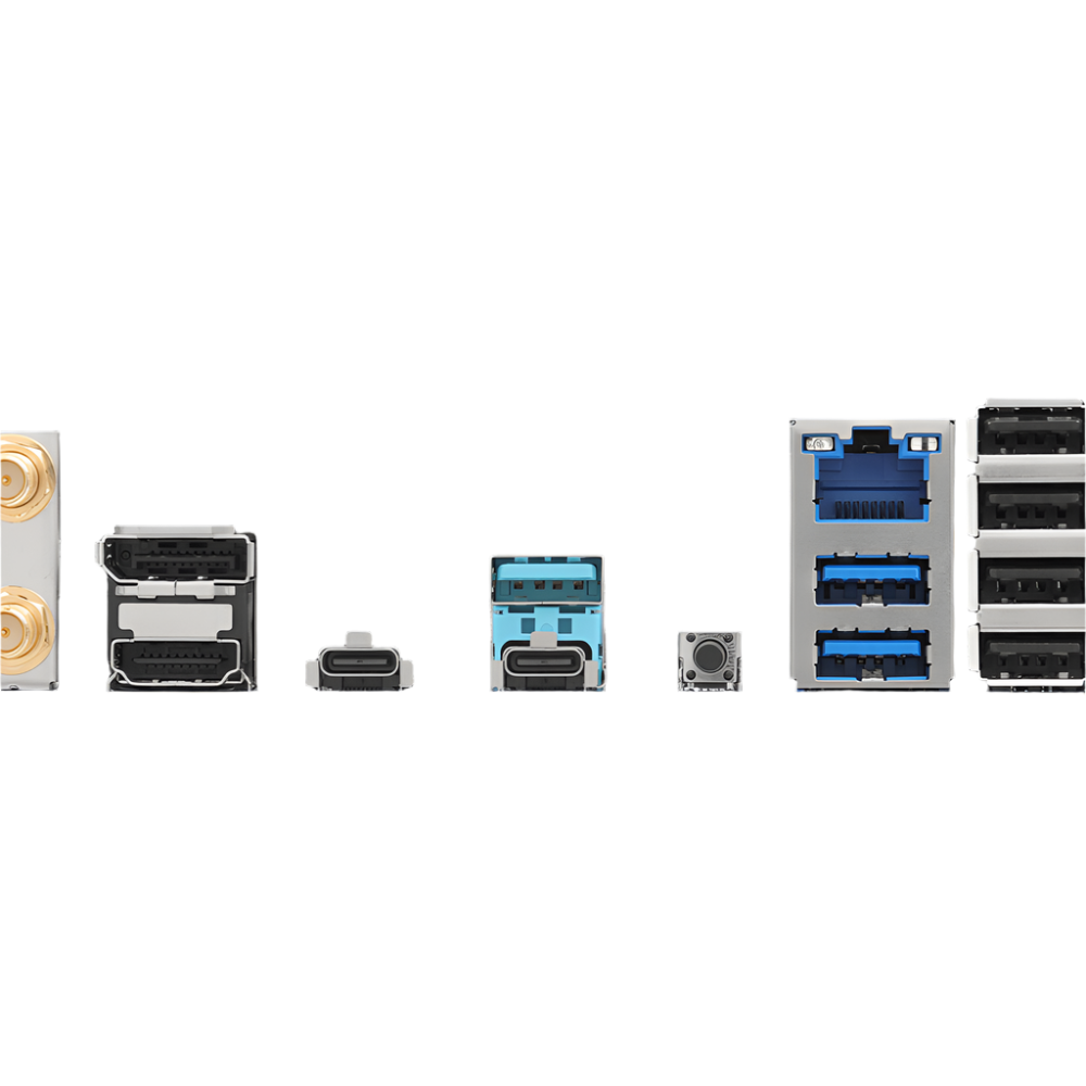2 x Antenna Ports  - 1 x HDMI Port - 1 x DisplayPort 1.4 - 2 x Thunderbolt™ 4 Type-C Ports (40 Gb/s for USB4 protocol; 40Gb/s for Thunderbolt™ protocol)* - 1 x USB 3.2 Gen2 Type-A Port (10 Gb/s) - 2 x USB 3.2 Gen1 Ports - 4 x USB 2.0 Ports - 1 x RJ-45 LAN Port - 1 x BIOS Flashback Button - HD Audio Jacks: Line in / Front Speaker / Microphone  |