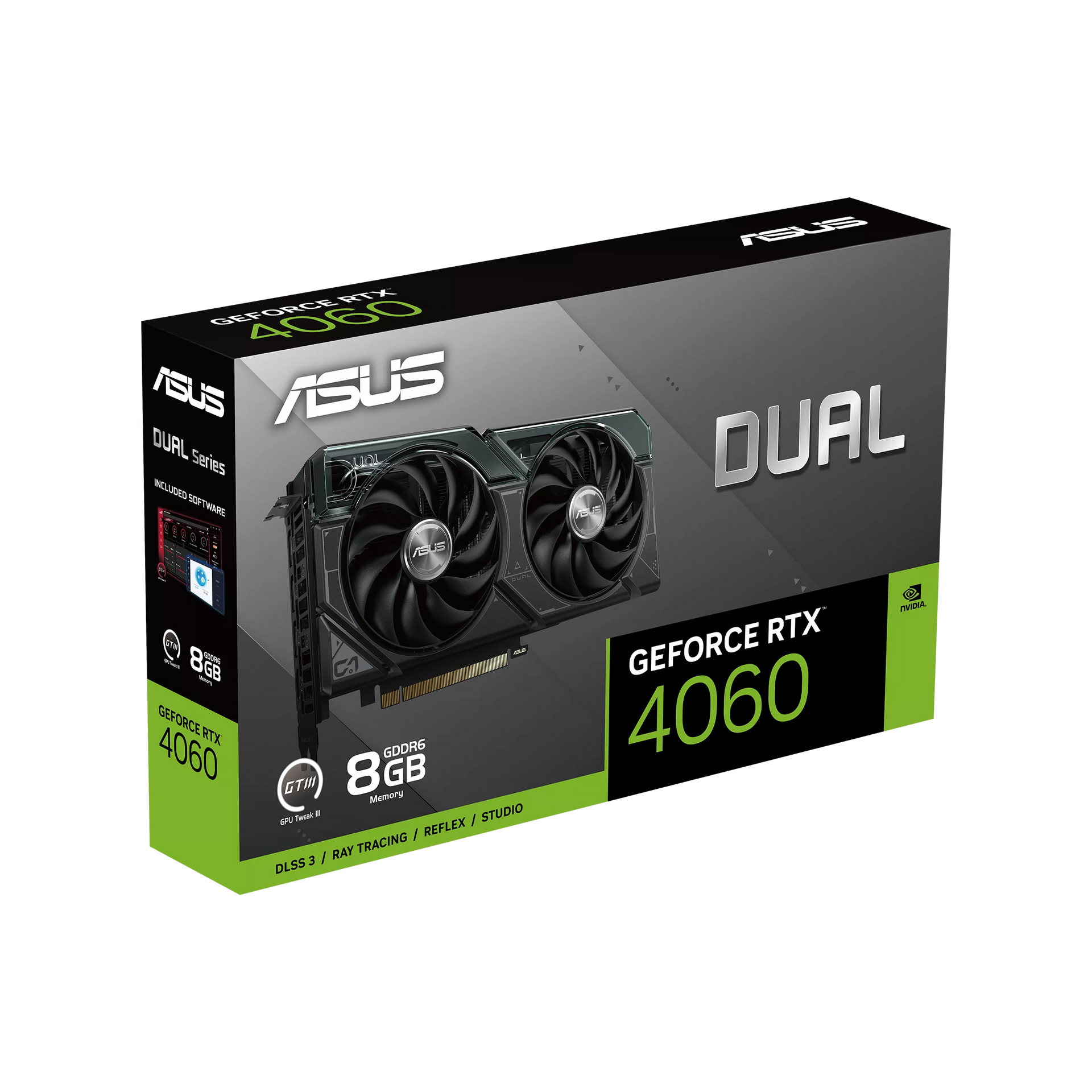 ASUS Dual GeForce rtx 4060 fuses dynamic thermal performance with broad compatibility. Advanced cooling solutions from flagship graphics cards — including two Axial-tech fans for maximizing airflow to the heatsink — are packed into the 22.7 cm long, 2.5-slot card, delivering more power in less space. These enhancements make ASUS Dual the perfect choice for gamers who want heavyweight graphics performance in a compact build.