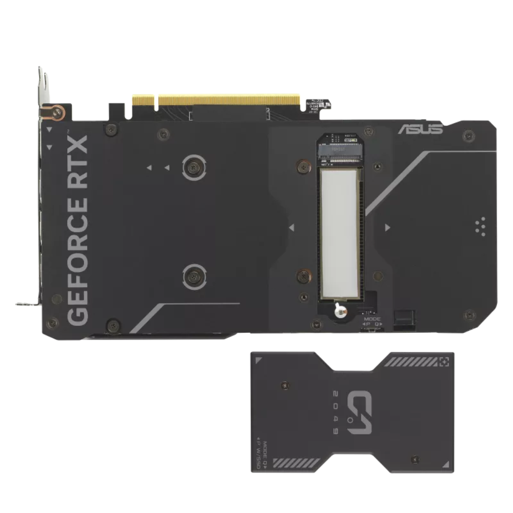 The ASUS Dual GeForce RTX™ 4060 Ti SSD graphics card takes compact gaming power and combines it with an all-new feature: a PCIe 4.0 M.2 slot integrated into the backside of the card, offering massive bandwidth for high-performance NVMe storage.