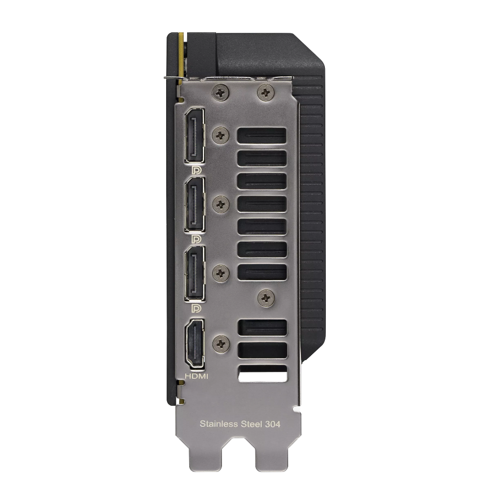 The mounting bracket for the PRIME GeForce RTX 4070 SUPER features grade 304 stainless steel, chosen for its strength and high resistance to corrosion.