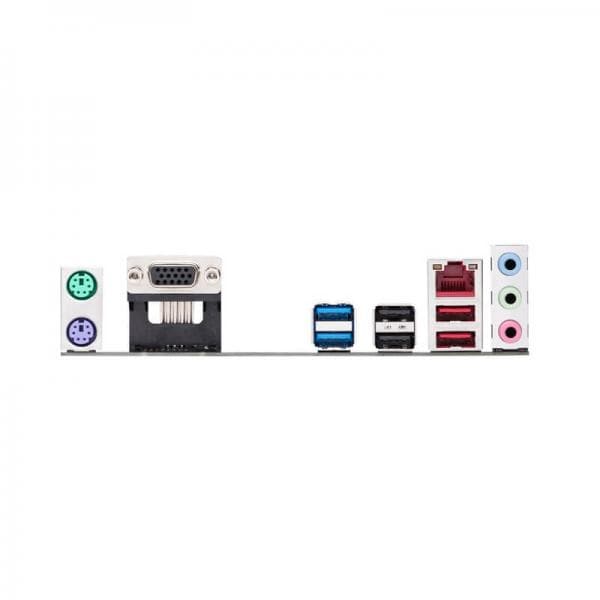 | Back I/O Ports | 1 x PS/2 keyboard (purple)1 x PS/2 mouse (green)1 x D-Sub1 x LAN (RJ45) port(s)2 x USB 3.1 Gen 1 (blue) Type-A up to 5Gbps4 x USB 2.03 x Audio jack(s) |