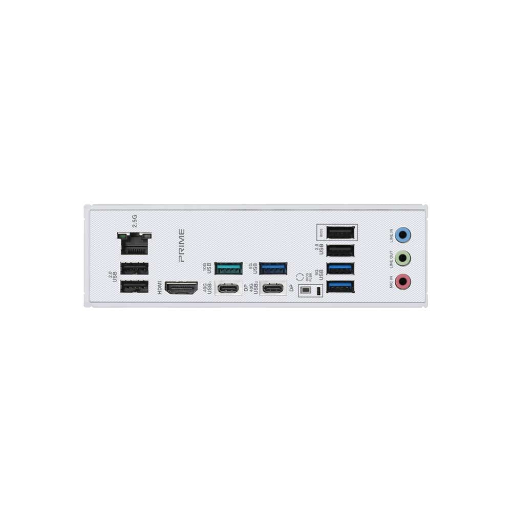 | Back Panel I/O Ports | 2 x USB4® (40Gbps) ports (2 x USB Type-C®) 1 x USB 10Gbps port (1 x Type-A) 3 x USB 5Gbps ports (3 x Type-A) 4 x USB 2.0 ports (4 x Type-A) 1 x HDMI™ port 1 x Realtek 2.5Gb Ethernet port 3 x Audio jacks 1 x BIOS FlashBack™ button |