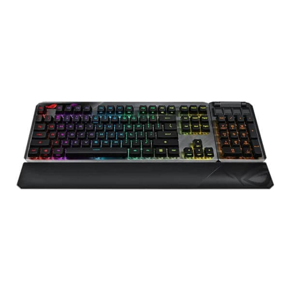 ASUS ROG Claymore II modular TKL 80% / 100% gaming mechanical keyboard with ROG RX Optical Mechanical Switches, detachable numpad & wrist rest, wired & wireless 2.4G modes, extra customizable clicky hotkeys, volume control wheel and wireless Aura Sync.