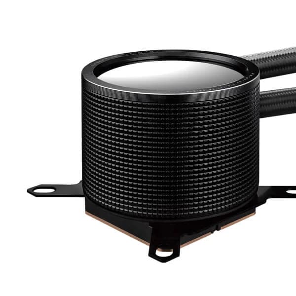 The 8th Gen Asetek pump sports a 3-phase motor for higher flow and quieter operation, riding on a larger coldplate ideally sized for the latest Intel and AMD processors.