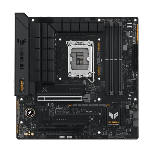 ASUS TUF GAMING B760M-PLUS takes all the essential elements of the latest Intel® processors and combines them with game-ready features and proven durability. Engineered with military-grade components, an upgraded power solution and a comprehensive cooling system, this motherboard goes beyond expectations with rock-solid performance for marathon gaming. TUF GAMING motherboards also undergo rigorous endurance testing to ensure that they can handle conditions where others may fail. Aesthetically, this model incorporates an embossed nameplate and geometric design elements to reflect the dependability and stability that defines the TUF GAMING series.