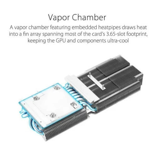 A vapor chamber and generously sized heatsink combo efficiently soak up heat from the asus rtx 4090 GPU so that it can be whisked away by the three Axial-tech fans.