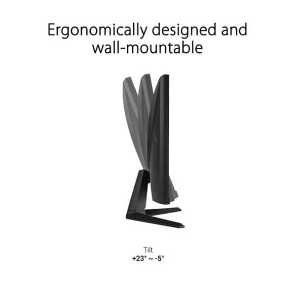 TUF Gaming VG247Q1A asus monitor has a stealth fighter inspired design that gives it a dynamic, futuristic look. The rear panel features wing-like elements, giving it a sensation of speed. A svelte, minimalist stand ensures stability and a touch of elegance.