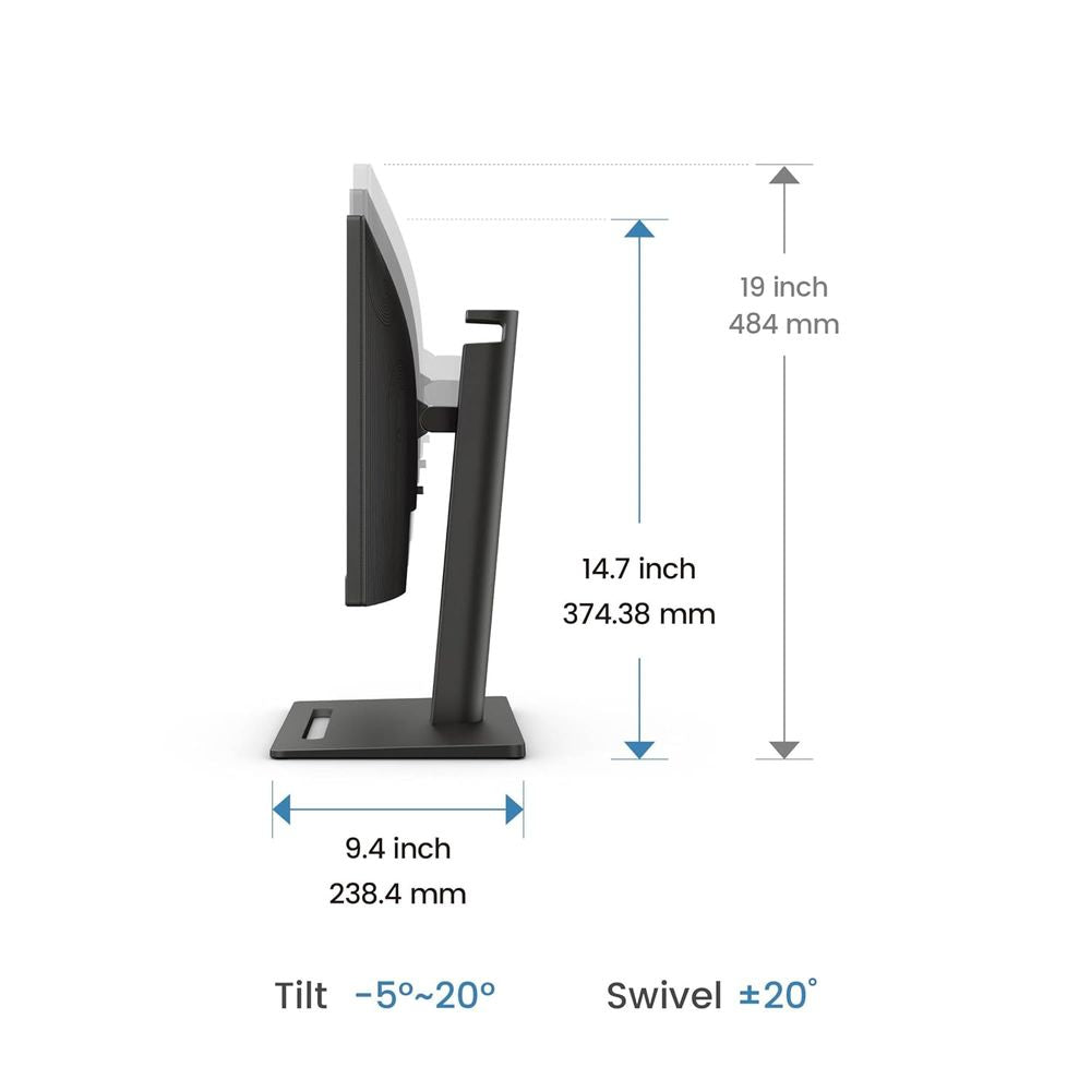 The monitor has tilt, pivot, swivel, and height adjustment to offer easy customization for flexibility in an ideal comfortable user environment, ensuring productivity throughout the day.
