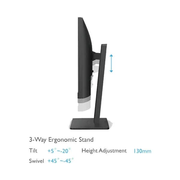 Monitor height, tilt, pivot, and swivel offer easy customization for flexible working and learning and an ideally comfortable user environment.