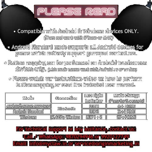 - [Dual Wireless Technology Supports Android & Windows] The CLAW Shoot Controller easily pairs via Bluetooth with Android Mobiles, Tablets, Smart TVs, and TV box, whereas the PC mode uses the included 2.4Ghz Wireless USB dongle.