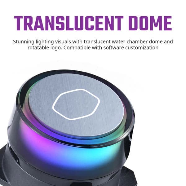 Cooler Master ML360 lllusion ARGB 360mm CPU Liquid Cooler (Black) comes with stunning lighting visuals with translucent water chamber dome and rotatable logo. Compatible with software customization