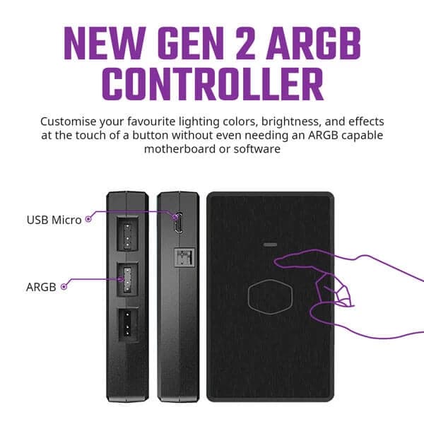 Included Addressable Gen 2 RGB controller works with Cooler Master's MasterPlus+ software Customizing each individual LED in color, effect, brightness, and more - all from an intuitive, convenient interface