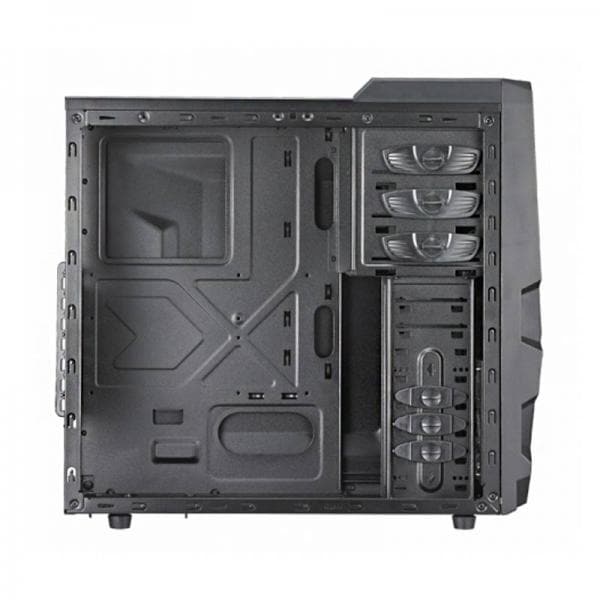 Cooler Master K380 ATX Cabinet (Black) is an entry level mid-tower with a rugged look and full matte black finish. Up to four fans can be installed. One 120mm red LED fan located behind the front panel is included and offers optimized cooling. A fan can be mounted on the windowed side panel to keep graphics cards cool.