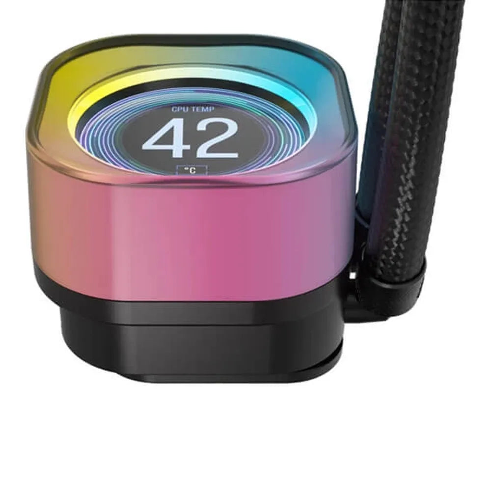 This CORSAIR iCUE Link H150i 360 LCD RGB model contains addressable RGB (ARGB) lighting features. The fans of this cooler include ARGB lighting that enables users to create customized lighting effects. Users can create dynamic lighting displays through CORSAIR's iCUE software by synchronizing the ARGB lighting. ARGB lighting technology improves both form and functionality of the cooler.
