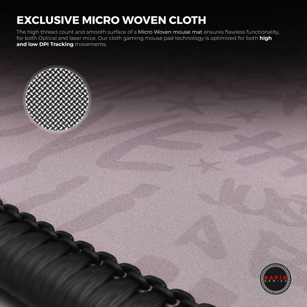 - Exclusive Micro-Woven Spill-proof / Water-proof Cloth Surface - Optimized for both Laser & Optical mice and high & low DPI tracking movements.