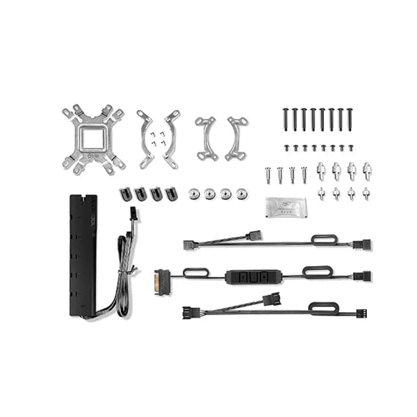 - 5V ARGB lighting on the fans and waterblock controllable through popular motherboard software or through the included RGB controller