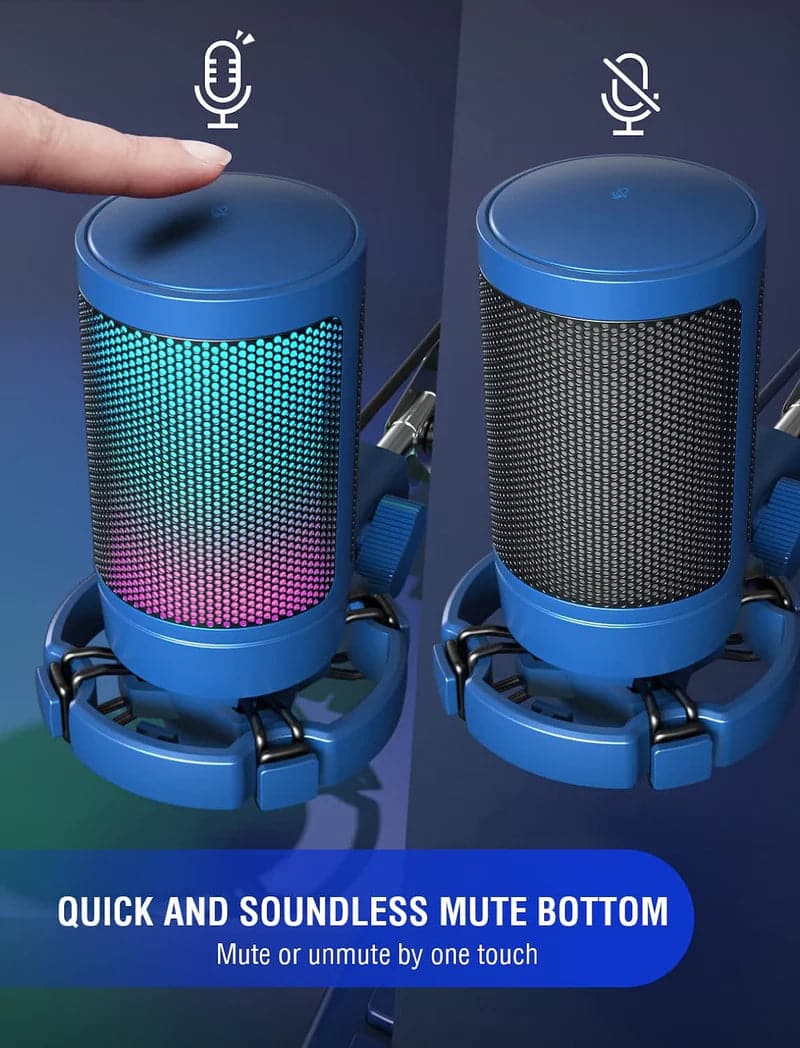Chromatic RGB makes you immerse yourself in personalized gaming effects. Quick-touch mute button on the top helps you mute the mic silently in one second. Reminding of working status, RGB will be off when the mic is muted. No need to worry about audio accidents during streaming.