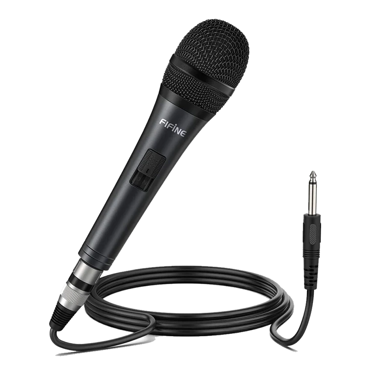 The smooth frequency range is solid at 50 to 18 kHz. The 1/4’’ microphone karaoke FIFINE K6 is suited well for handling high sound pressure levels. 1/4'' plug in microphone is tailored for spoken word, various instruments like acoustic guitar. Having no power requirement makes dynamic microphone for singing the ideal choice for any live applications.