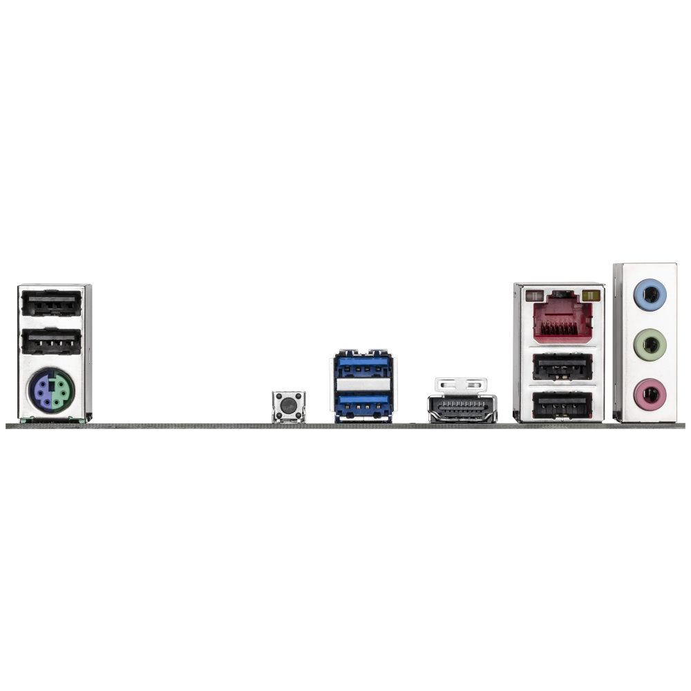 | Back Panel Connectors | 1 x PS/2 keyboard/mouse port 2 x USB 3.2 Gen 1 ports 4 x USB 2.0/1.1 ports 1 x HDMI port* 1 x Q-Flash Plus button 1 x RJ-45 port 3 x audio jacks * Actual support may vary by CPU. |