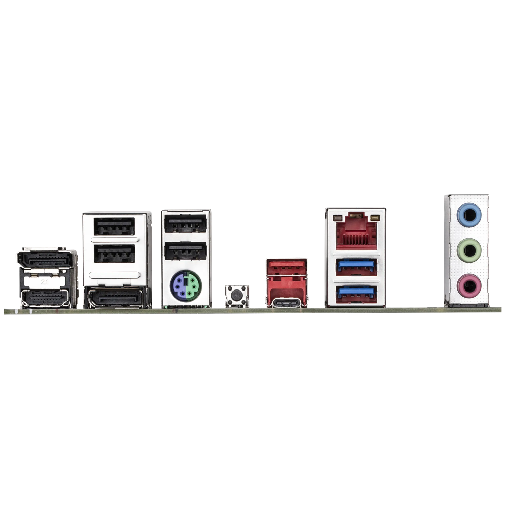 1 x HDMI port (Note) 2 x DisplayPorts (Note) 1 x Q-Flash Plus button 1 x PS/2 keyboard/mouse port 1 x USB 3.2 Gen 2 Type-A ports (red) 1 x USB Type-C® port, with USB 3.2 Gen 2 support 2 x USB 3.2 Gen 1 ports 4 x USB 2.0/1.1 ports 1 x RJ-45 port 3 x audio jacks (Note) Actual support may vary by CPU |