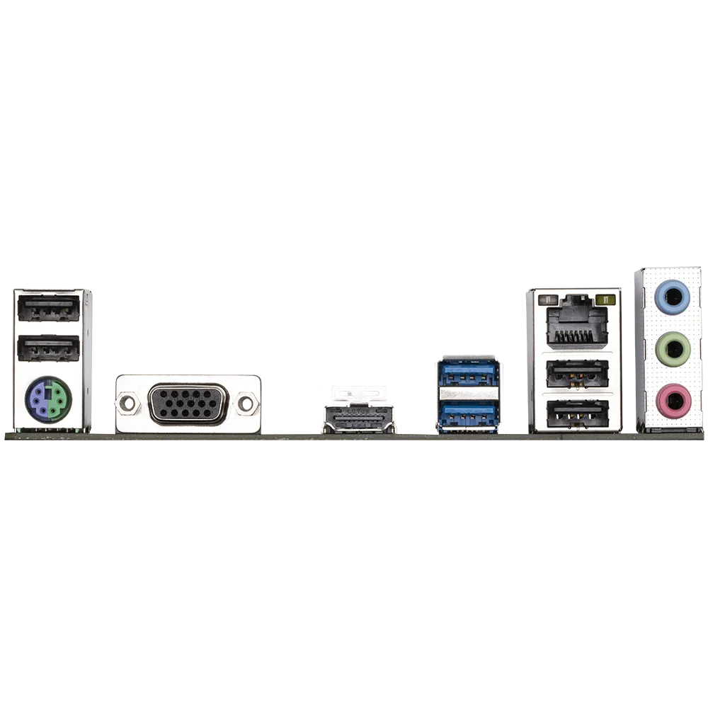 | Back Panel Connectors | 1 x PS/2 keyboard/mouse port 1 x D-Sub port 1 x HDMI port 2 x USB 3.2 Gen 1 ports 4 x USB 2.0/1.1 ports 1 x RJ-45 port 3 x audio jacks |