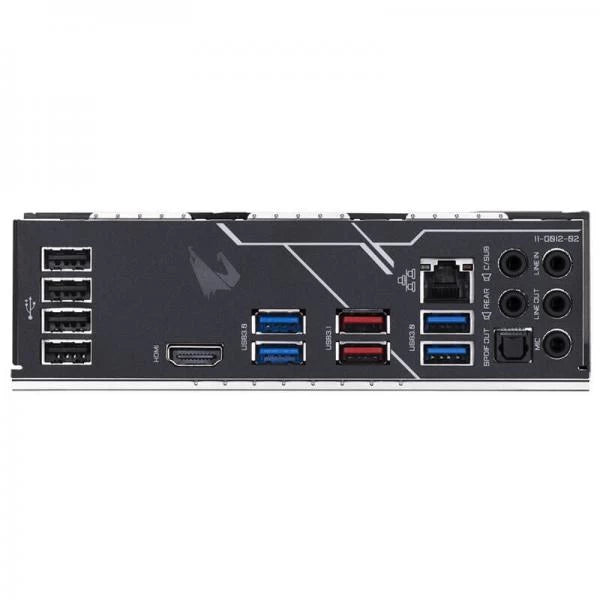 | Back Panel Connectors | 4 x USB 2.0/1.1 ports 1 x HDMI port 4 x USB 3.1 Gen 1 ports 2 x USB 3.1 Gen 2 Type-A ports (red) 1 x RJ-45 port 1 x optical S/PDIF Out connector 5 x audio jacks |