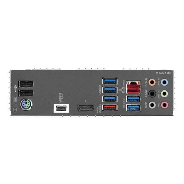 1 x PS/2 keyboard/mouse port 1 x USB Type-C® header, with USB 3.2 Gen2 support 1 x DisplayPort 1 x USB 3.2 Gen 2 Type-A port (red) 5 x USB 3.2 Gen 1 ports 2 x USB 2.0/1.1 ports 1 x RJ-45 port 6 x audio jacks |