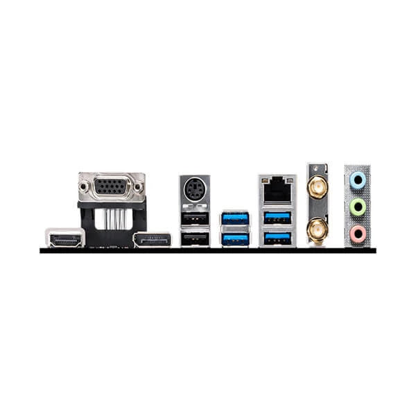 | BACK PANEL PORTS | HDMI™ VGA DisplayPort Keyboard / Mouse 2.5G LAN Wi-Fi / Bluetooth Audio Connectors USB 2.0 USB 3.2 Gen 1 5Gbps (Type-A) |