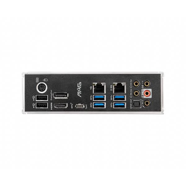 PS/2 Combo Port DisplayPort 1G LAN Port 2.5G LAN Port HD Audio Connectors USB 2.0 Ports HDMI USB 3.2 Gen 2x2 20Gbps (Type-C) USB 3.2 Gen 1 5Gbps (Type-A) USB 3.2 Gen 1 5Gbps (Type-A) Optical S/PDIF OUT |
