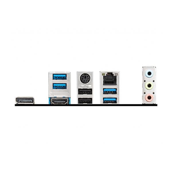 USB 3.2 Gen 1 5Gbps Type A PS/2 Combo Port Gigabit LAN Port Flash BIOS Button DisplayPort HDMI USB 2.0 port USB 3.2 Gen 1 5Gbps Type A HD Audio Connectors |