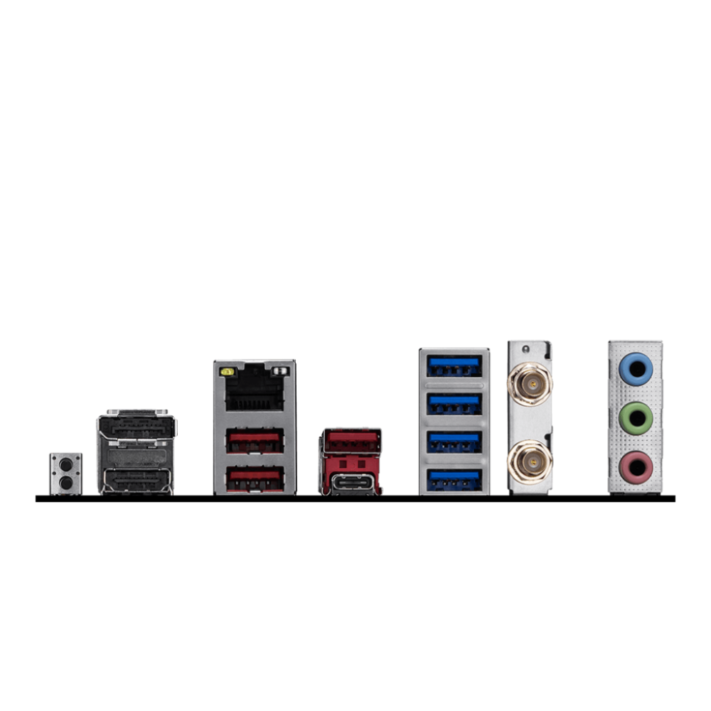 | Onboard Graphics | 1x HDMI™ Support HDMITM 2.1, maximum resolution of 4K 60Hz* 1x DisplayPort Support DisplayPort 1.4, maximum resolution of 4K 60Hz* *Available only on processors featuring integrated graphics. Graphics specifications may vary depending on the CPU installed. |