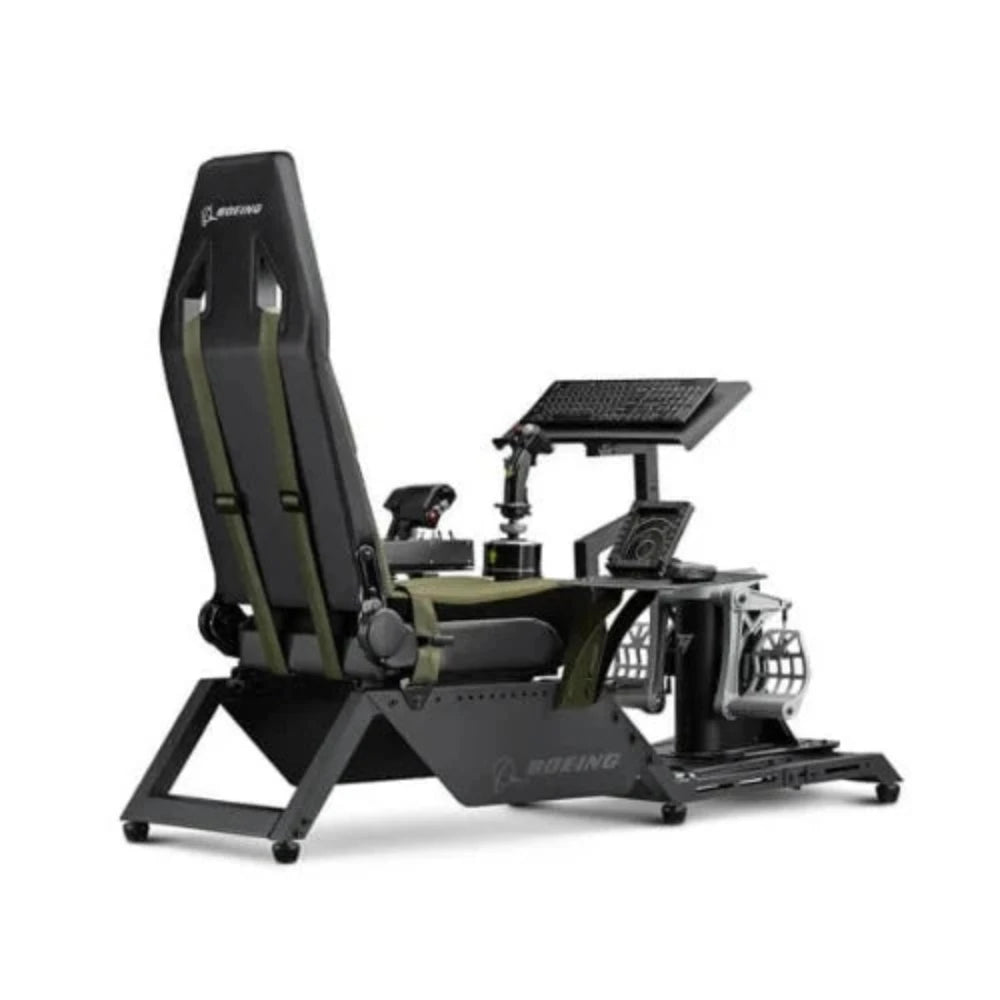 The Next Level Racing® Flight Simulator Boeing Military Edition enables the Boeing community to interact with a brand they love and engage with the growing community of flight simulation. The seat is covered with a military inspired green canvas fabric to resemble a Boeing military flight cockpit and provide a comfortable flight experience during combat. For a visual brand experience, the Boeing logo is embroidered on the back of the flight seat, laser etched on the side panels, and military green highlights have been added. Finally, Next Level Racing® has collaborated with Thrustmaster® to ensure seamless compatibility with the Thrustmaster® TCA Yoke Pack Boeing Edition for a Boeing inspired Commercial Flight deck experience. With the Boeing Edition cockpits, users can experience the different categories of aviation ranging from Commercial, Military, General Aviation, and Space.