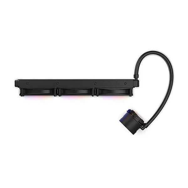 The NZXT Kraken RGB 360mm liquid cooling device contains RGB lighting features according to its name. The product supports RGB lighting functionality through its addressable RGB (ARGB) design. Every element within the NZXT Kraken RGB 360mm system can be independently programmed through addressable RGB LEDs that exist in both the fan units and the pump cap logo. The ARGB lighting mechanism enables users to produce personalised animated illumination patterns that the NZXT CAM application can synchronise across multiple components within the PC system. The Kraken RGB 360 stands out through its ARGB lighting because it transforms this device into a standout component that can become the focal point of any gaming PC setup.