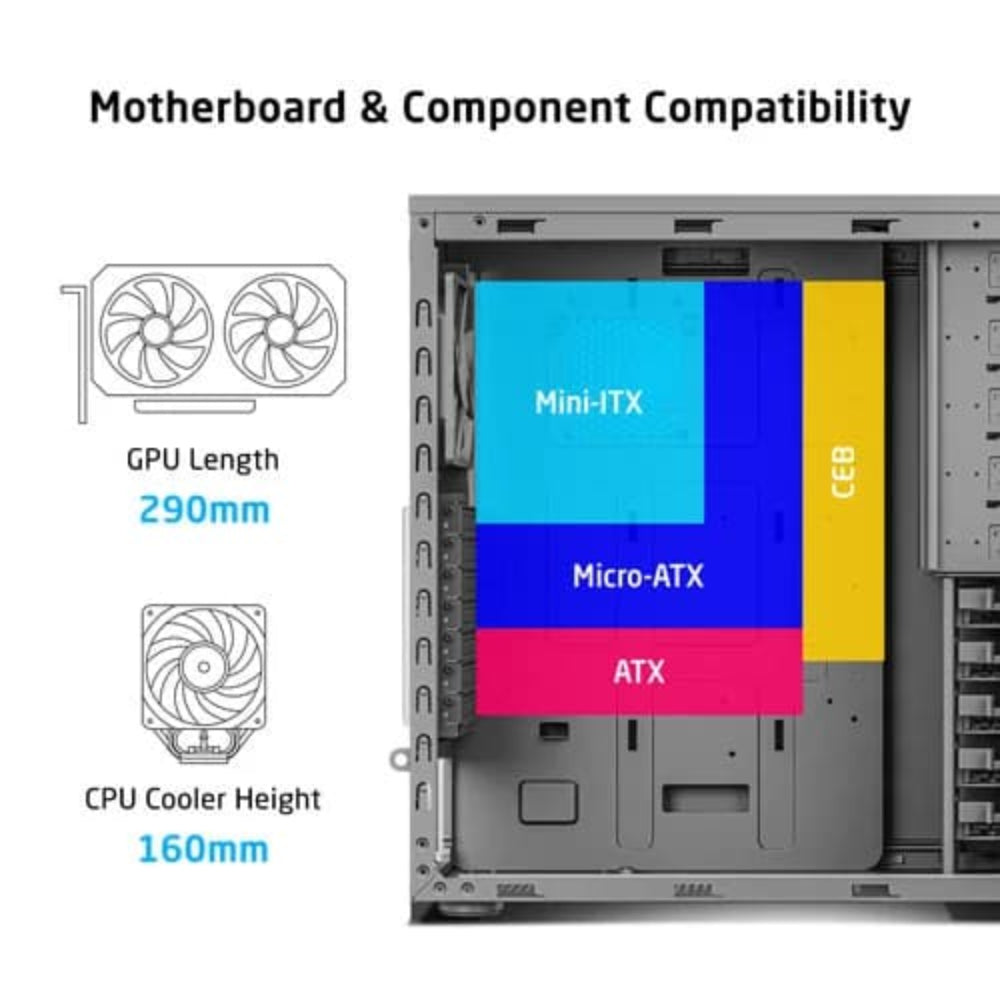 Supports Motherboard: CEB, ATX, Micro-ATX, Mini-ITX