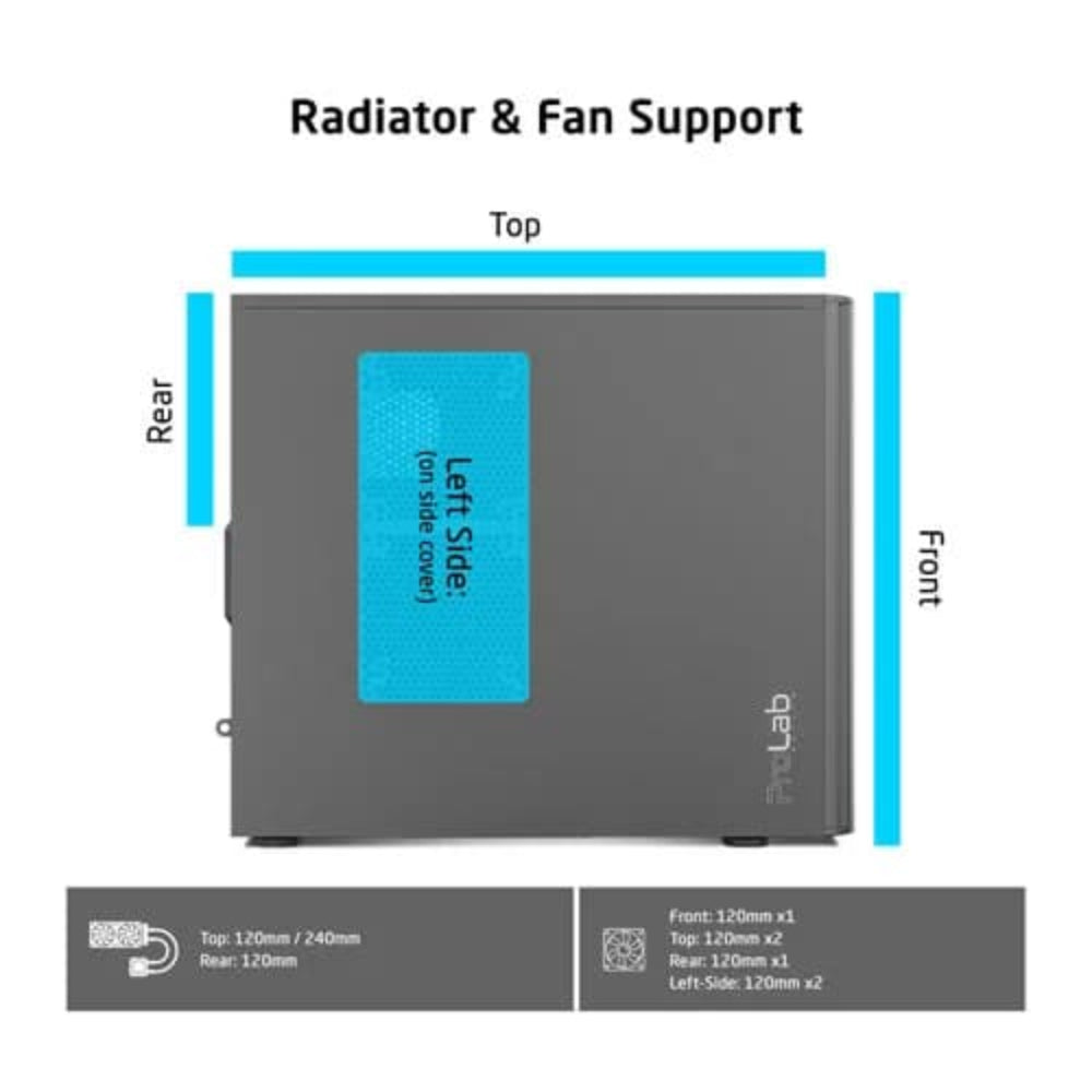 | Side Panel FAN Support | 2x120mm |