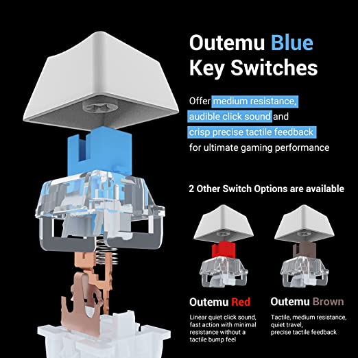 87 Key Mechanical Gaming Keyboard with Custom Switches (Cherry Blue equivalent) for longevity with greater durability and responsiveness offering clicky medium resistance audible loud click sound crisp precise tactile feedback for typing and gaming
