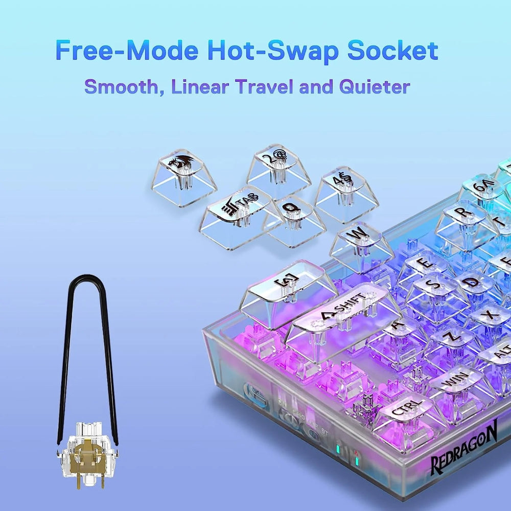 - REDRAGON K631 Pro Castor 65% Mechanical Wired Gaming Keyboard ( White ) ( Translucent Custom Switch )