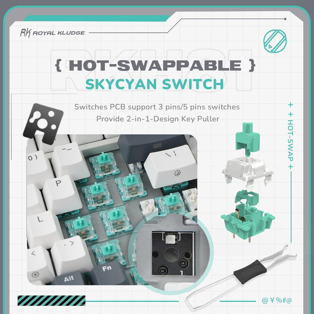 - ROYAL KLUDGE RK H81 75% Wireless Mechanical Gaming Keyboard ( White ) ( SkyCyan Switch )