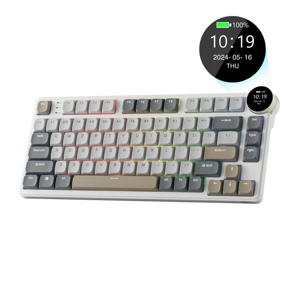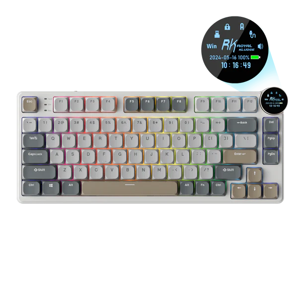 - ROYAL KLUDGE RK N80 75% RGB Mechanical Wireless Gaming Keyboard ( Pearly Dawn ) ( RK Low Profile Brown )