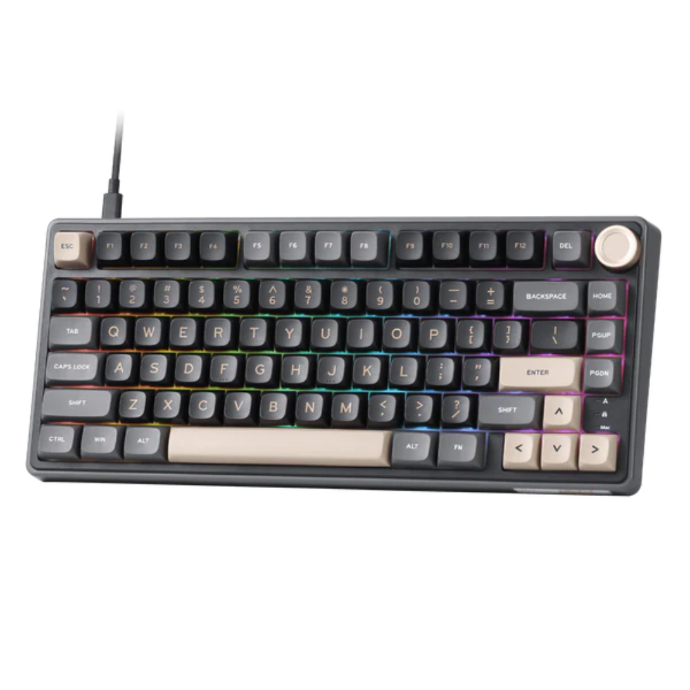 The RK R75 mechanical keyboard features a 75% layout, keeping essential arrow and function keys while freeing up desk space for a cleaner setup. The CNC-machined aluminum volume knob provides precise control over audio, enhancing both gaming and work efficiency. Its compact size makes it perfect for gamers and professionals seeking performance in a stylish, space-saving design.