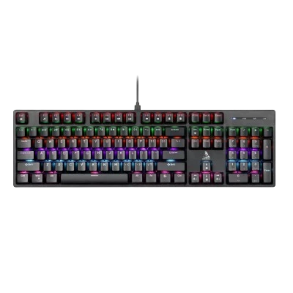 Blue mechanical switches rated for up to 50 million clicks provide exceptional durability and responsiveness, ensuring prolonged gaming sessions with consistent and reliable performance, catering to gamers who demand high durability and tactile feedback.