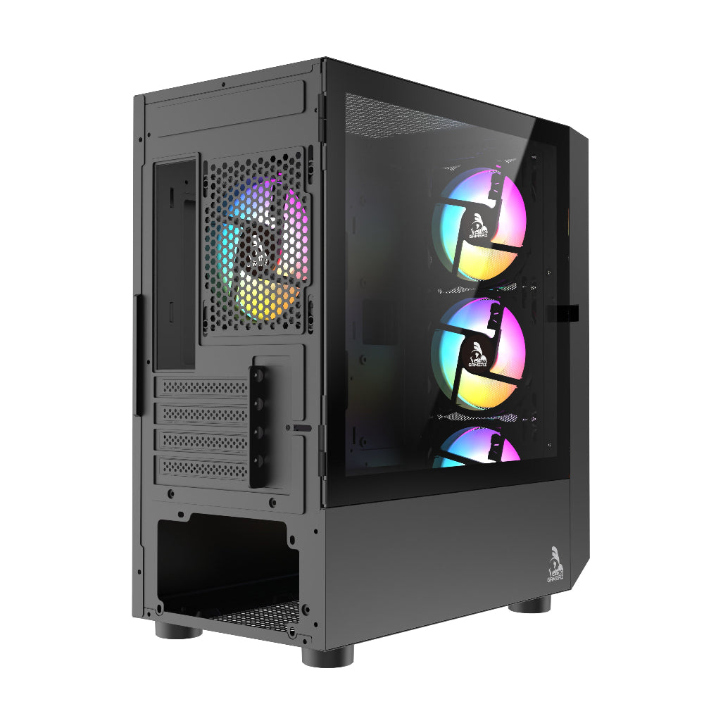 The mid-tower case is well-equipped with 4 built-in 120mm fans to maximize airflow, while ARGB deliver stunning visuals with 16.8 million customizable colours, with support for 3 additional fans