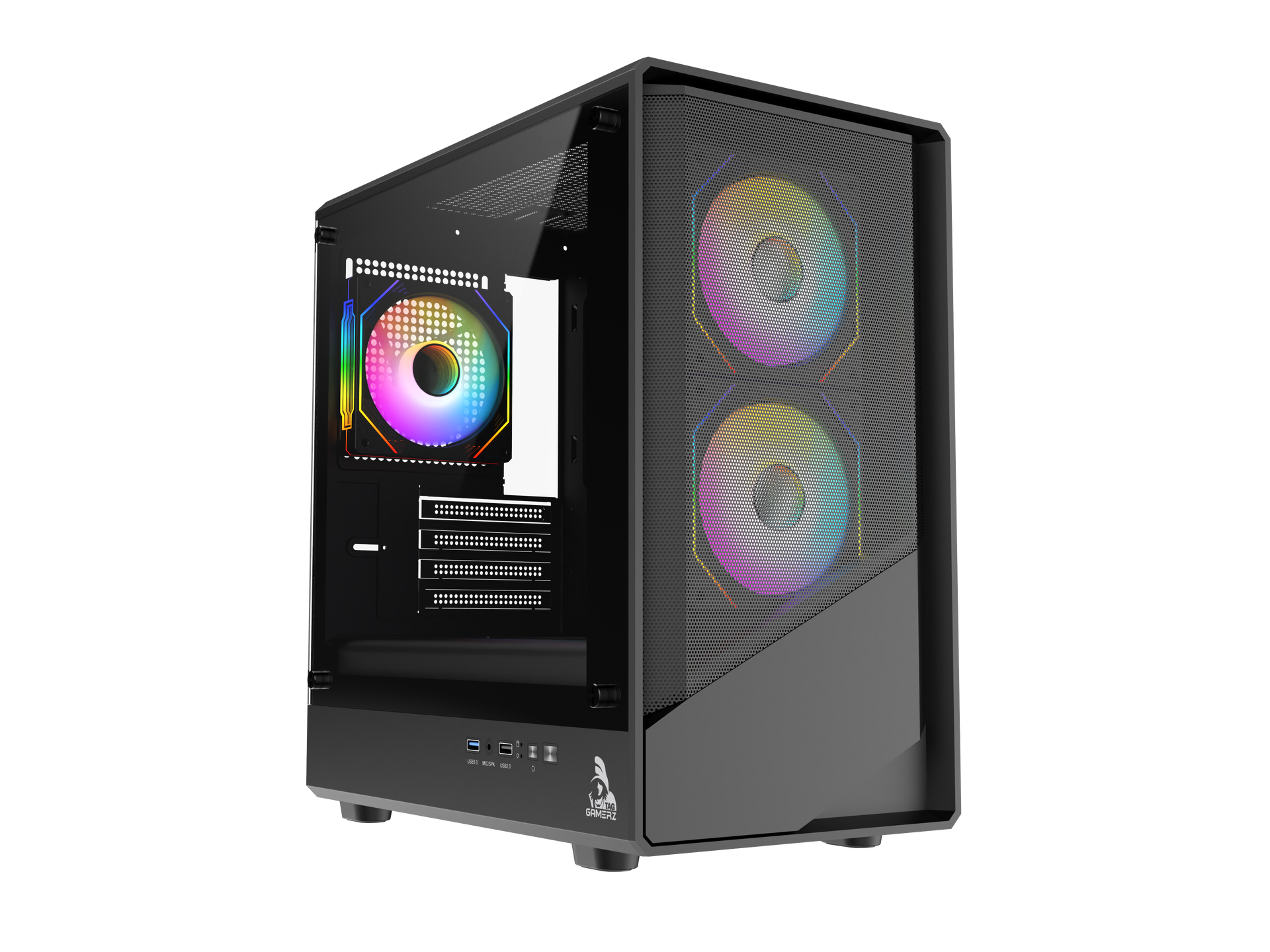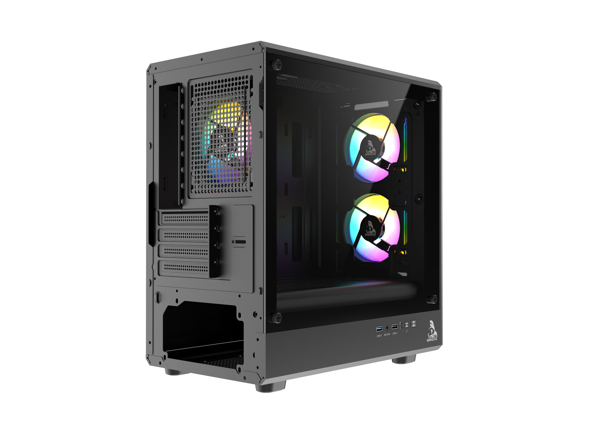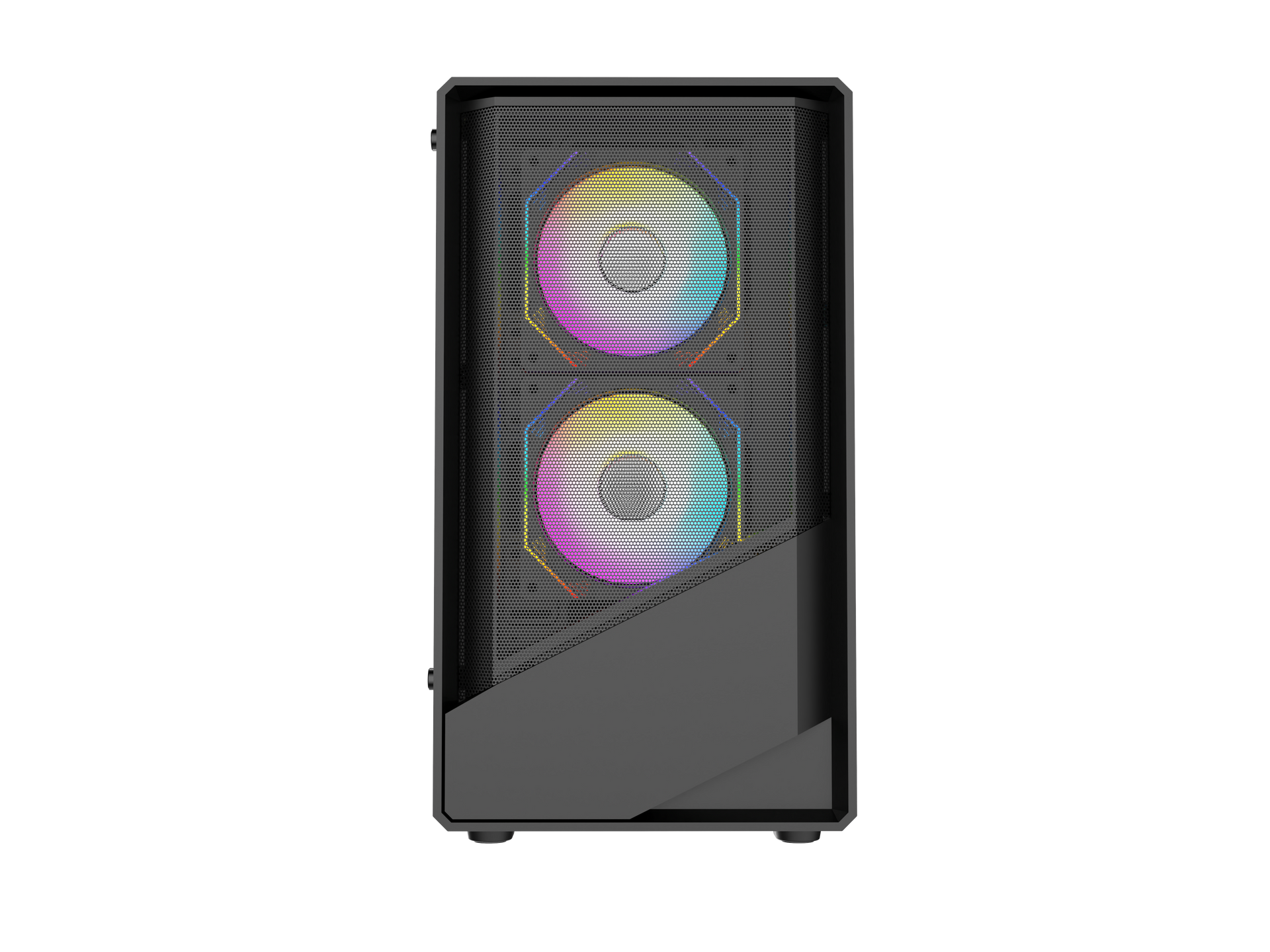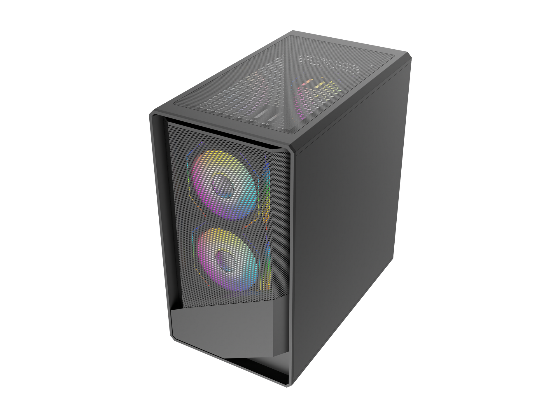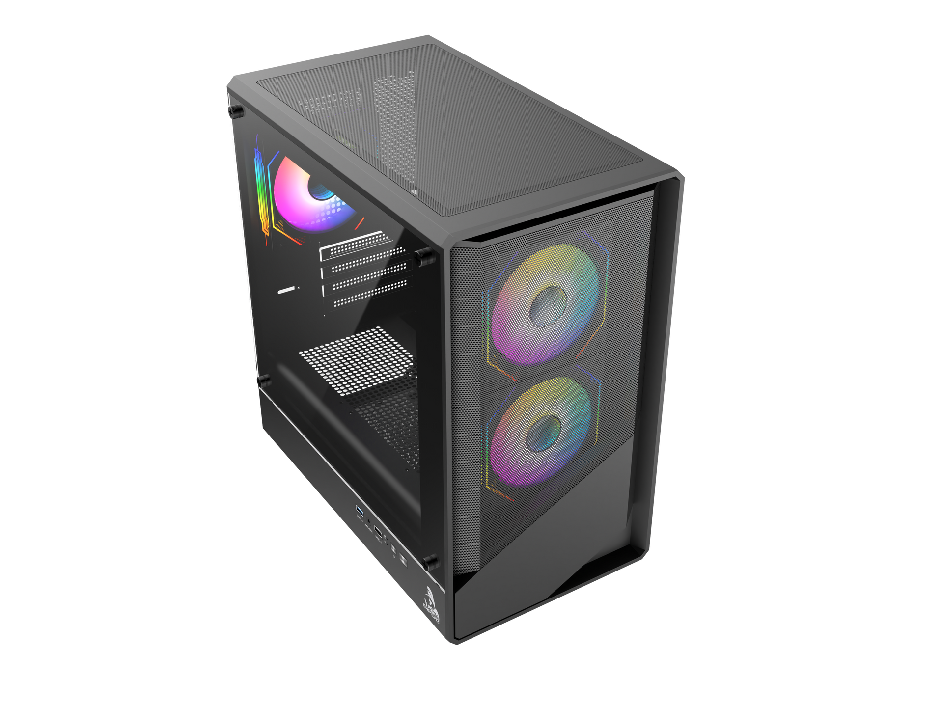 The mid-tower case is well-equipped with 3 Pre-installed 120mm fans to maximize airflow, while ARGB deliver stunning visuals with 16.8 million customizable colours via Motherboard Software or top-mounted switch