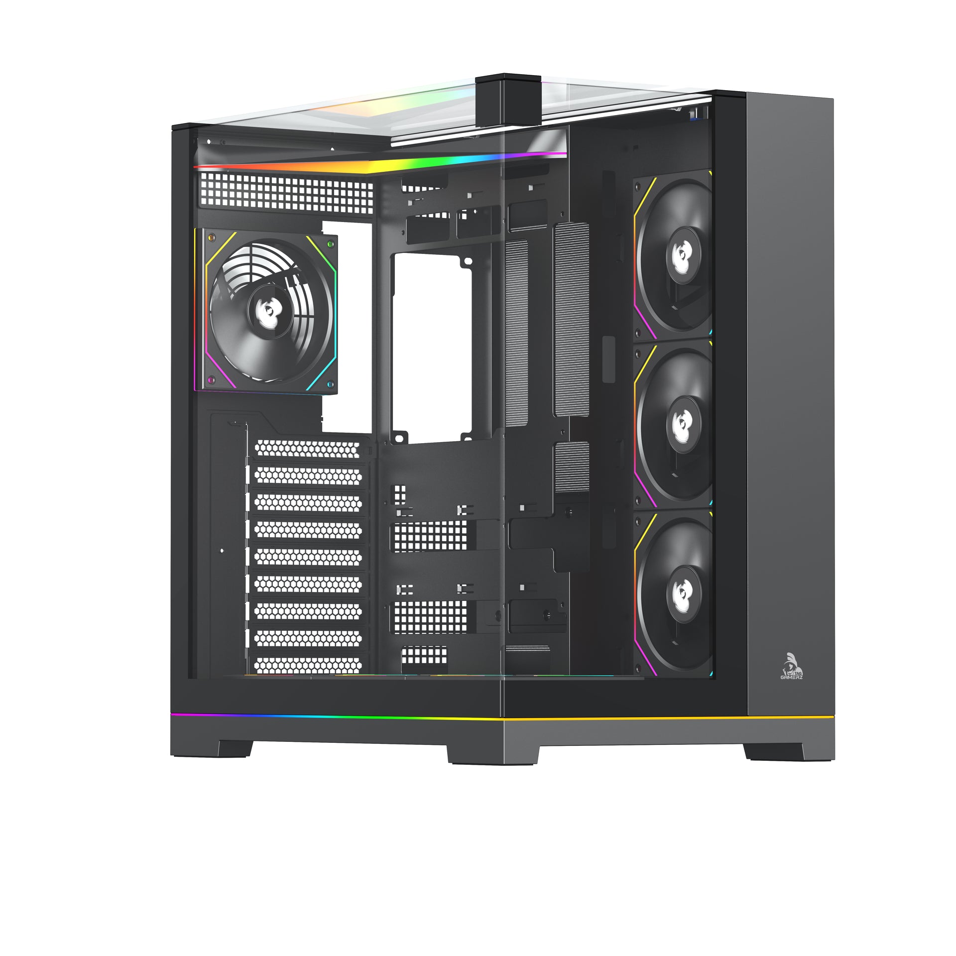 - three side Panoramic view to Showcase your Super build. Wraparound 4mm thick tempered glass combined with 7 high-performance PWM ARGB fans with PWM controller HUB